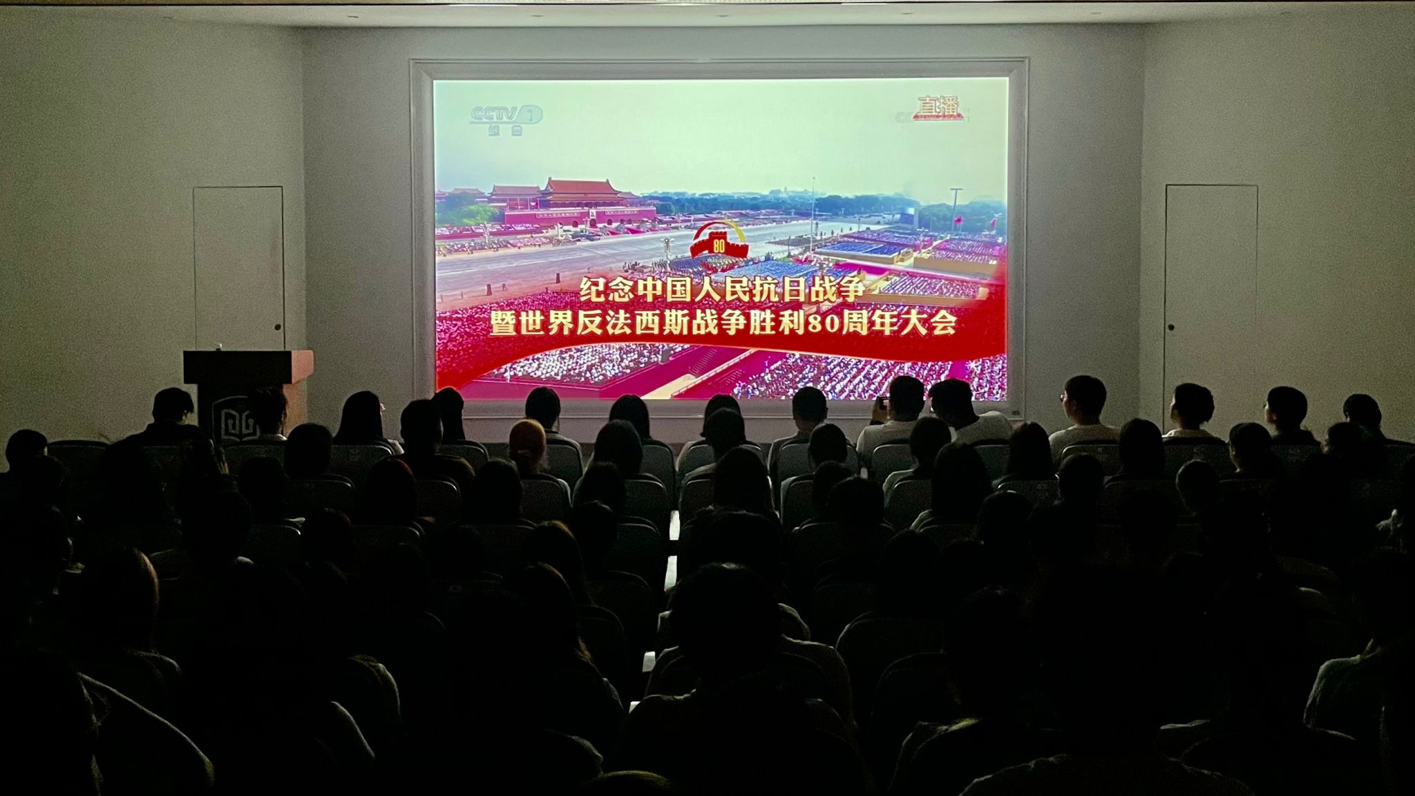 (通讯员 华震东)9月3日上午,纪念中国人民抗日战争暨世界反法西斯战争胜利80周年大会在北京天安门广场隆重举行,以盛大阅兵仪式,同世界人民一道纪念这个伟大的日子。校党委学生工作部(武装部)、校团委组织各学院团员青年代表200余人在武汉校区3115多功能放映厅集体观看大会直播,共同缅怀革命先烈,弘扬伟大抗战精神。