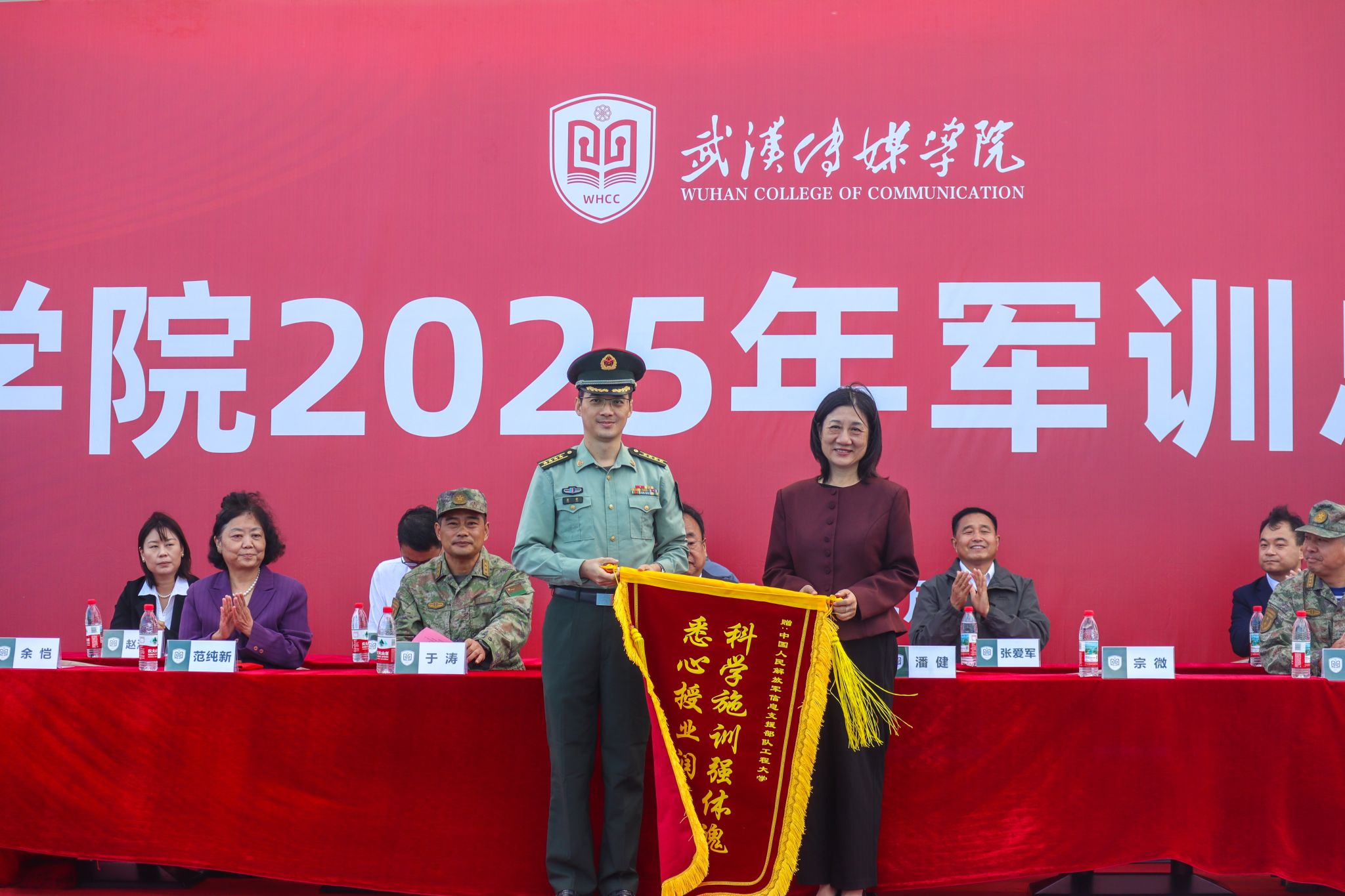 校党委副书记、常务副校长宗微代表学校向承训部队赠送锦旗,感谢他们在军训期间的辛勤付出和无私奉献。