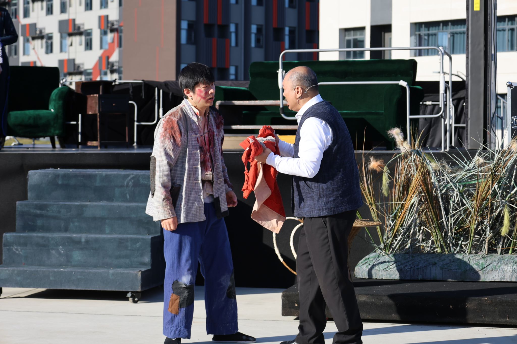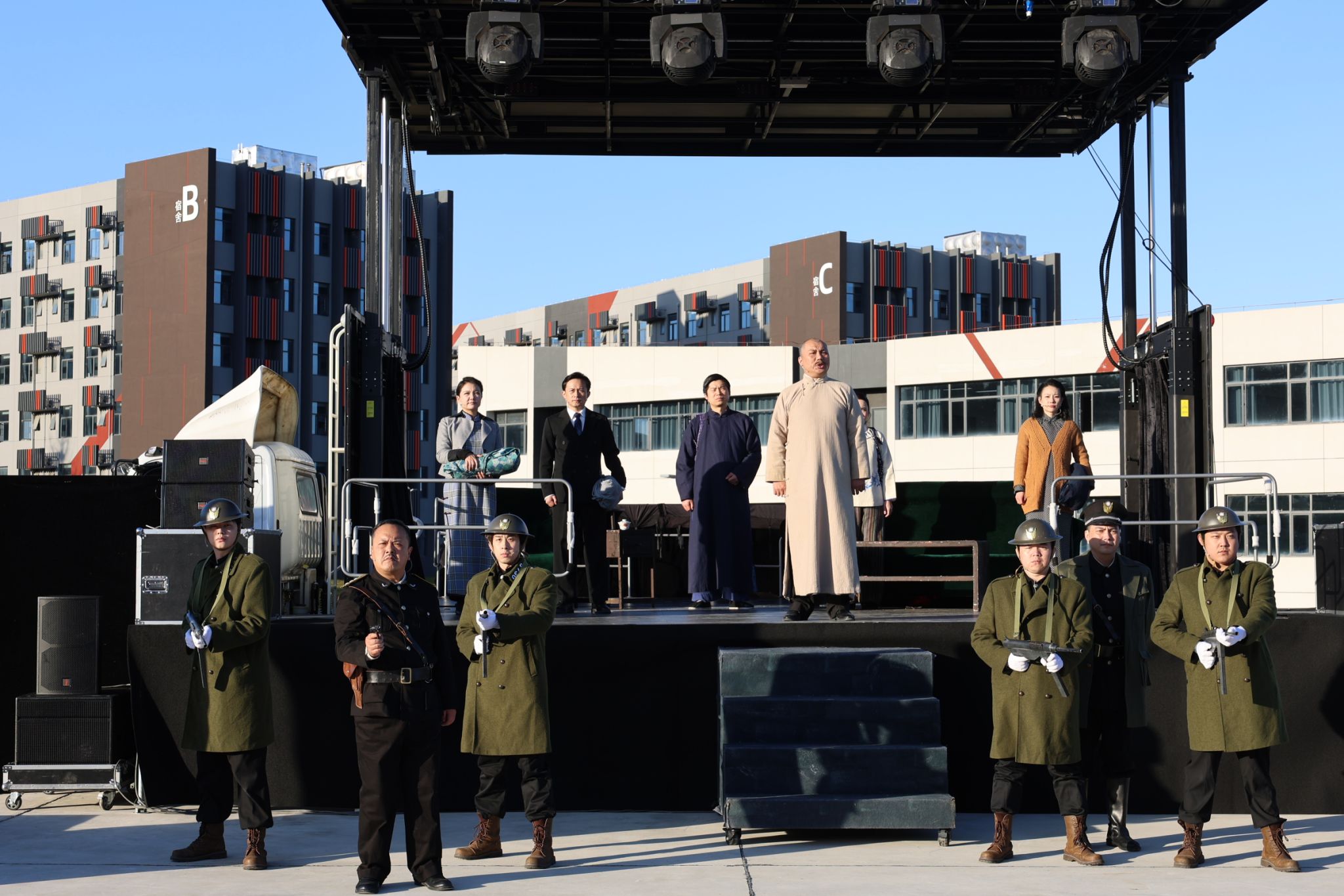 (记者 岳金松 )巍巍大别山,红旗耀初心;红色大悟地,精神永传承。这片创造了“二十八年红旗不倒”革命奇迹的土地上,11月18日迎来一场跨越时空的信仰对话——米兰体育网页版登录大悟校区隆重启动“从大悟出发——赓续大别山精神红色行动”系列活动。武汉人民艺术剧院大型原创话剧《董必武》作为活动核心亮点,在校区T2露天剧场重磅上演。这场由大悟县人民政府主办,米兰体育网页版登录、武汉人民艺术剧院联合举办的红色盛宴,以艺术为纽带实现红色基因与传媒教育的深度融合,为现场师生带来浸润心灵的精神洗礼,让大别山精神在青年心中扎根生长。