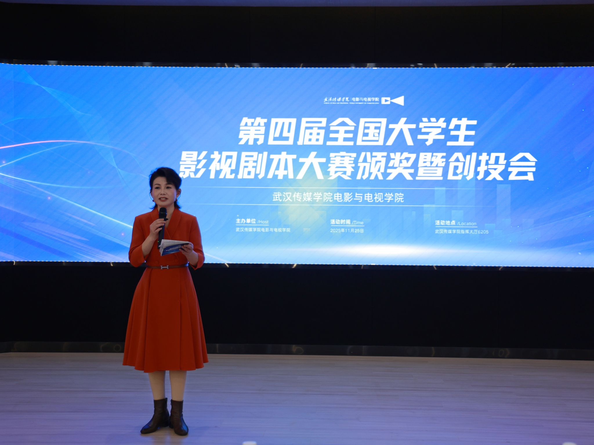 (通讯员 夏春秋)11月25日下午,第四届全国大学生影视剧本大赛颁奖暨创投会在我校6号教学楼指挥大厅举行。本次活动由我校电影与电视学院主办,以“聚焦青年原创力量,推动影视剧本从校园走向城市、走向市场”为宗旨,搭建学界与业界联动平台,为中国影视内容高质量发展发掘孵化青年人才。