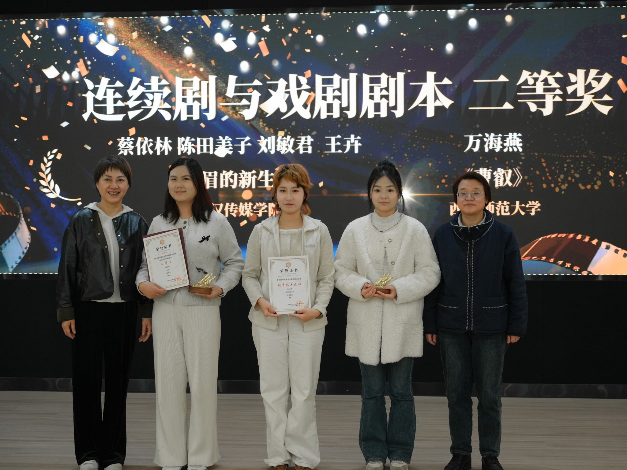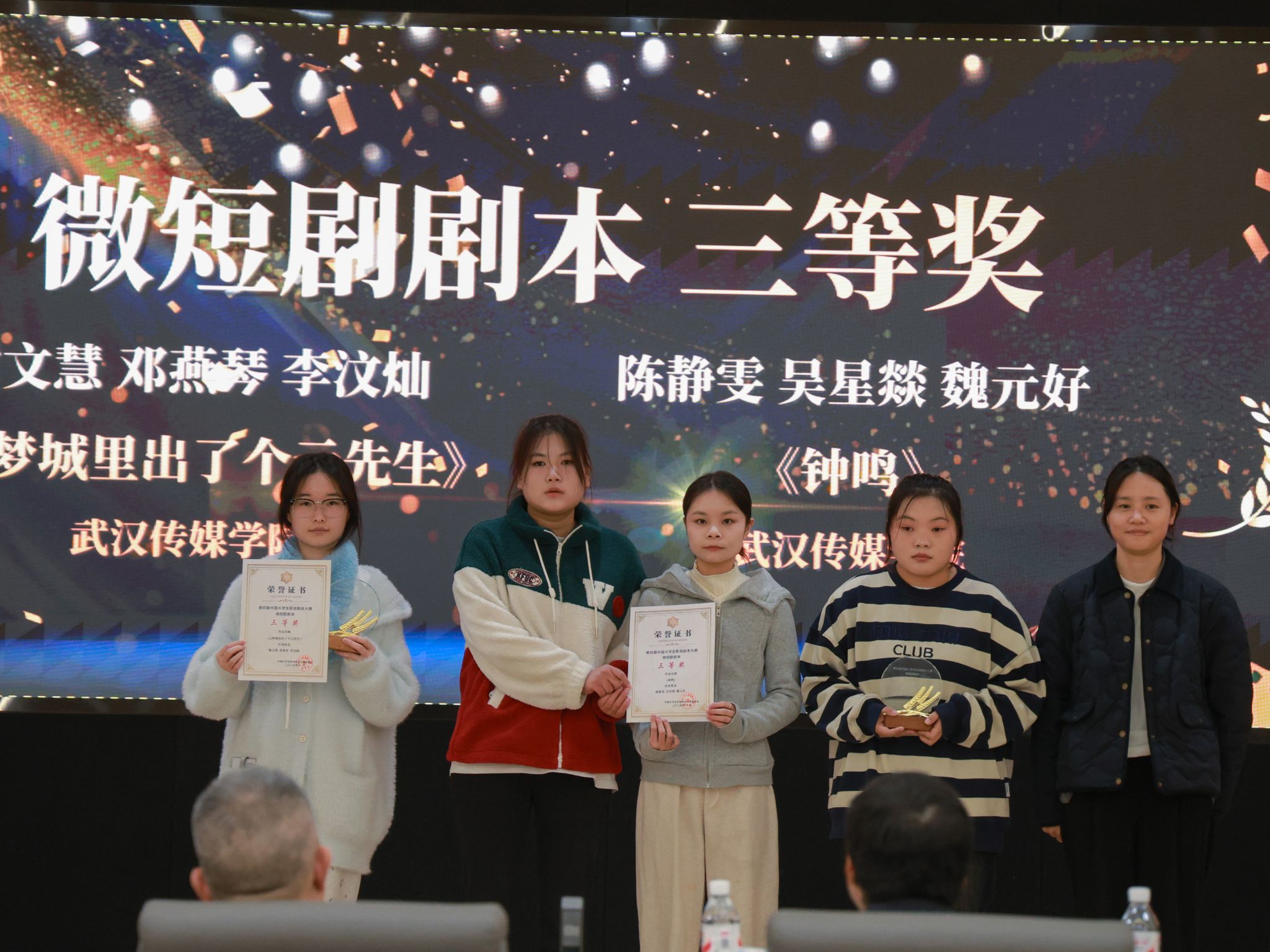 颁奖环节集中揭晓了各赛道奖项:电影剧本赛道上,西北政法大学王嘉潞团队《帷幕之后》获一等奖,厦门大学李姝锦《28号绿》、澳门科技大学林灏《你瞒我瞒》获二等奖;连续剧与戏剧剧本赛道中,华中师范大学蒋达辉《人生如煮》摘得一等奖,米兰体育网页版登录蔡依林团队《凤眉的新生活》获二等奖;微短剧赛道与湖北省“视听长江”微短剧剧本大赛联动,北京中医药大学宋钕帆《蕲艾沉香令》获二等奖,米兰体育网页版登录谢文慧团队《云梦城里出了个云先生》、王国智《渡河》分获三等奖与优秀奖。