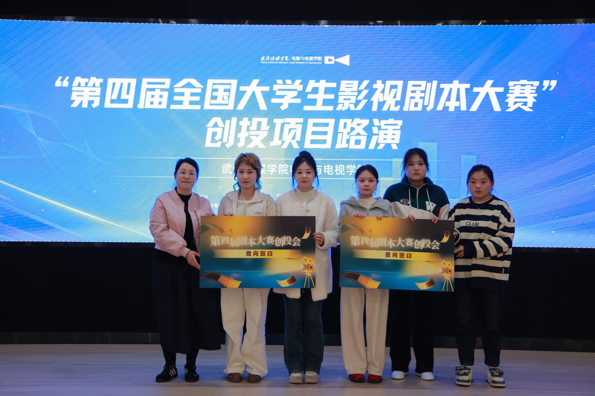 此次活动搭建了校园创作与行业市场的沟通桥梁。未来,我校将持续深耕产学研融合,推动更多校园原创作品走向市场。活动最后,全体嘉宾与获奖学生合影留念,第四届全国大学生影视剧本大赛颁奖暨创投会圆满落幕。