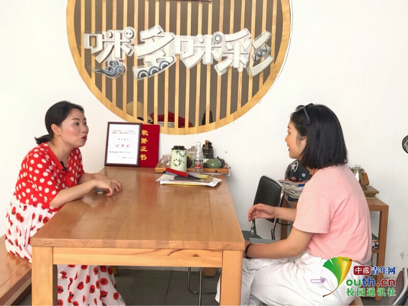 图为实践团成员对田若兰的身边好友进行采访(中国青年网通讯员 周宇 供图)