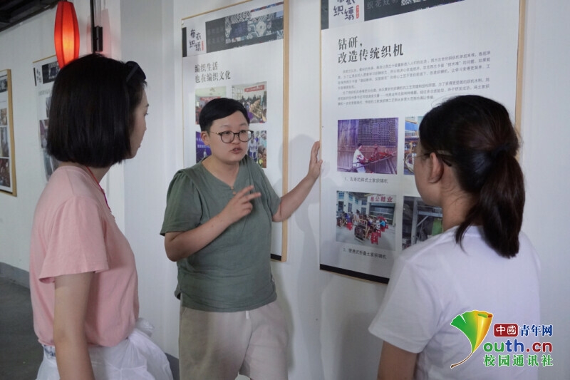 图为西兰卡普生产基地工作人员为实践团成员进行讲解(中国青年网通讯员 陈琳 供图)