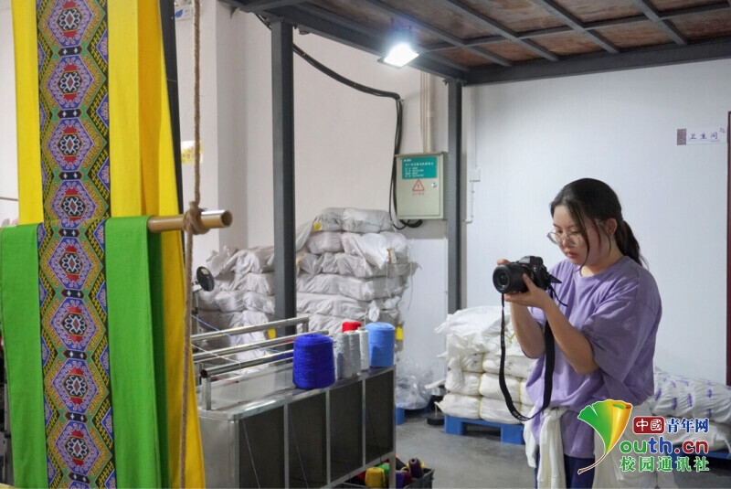 图为实践团成员在西兰卡普生产基地内进行宣传片拍摄(中国青年网通讯员 刘心语 供图)