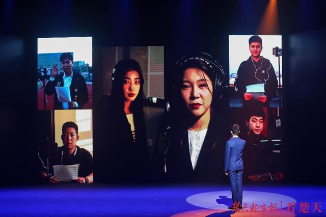 情景剧《我想活着》,两位表演者在没有任何灯光和音乐的配合下,仅通过肢体语言向观众表达了冲破疫情阴霾,走向新生活的热切期望;话剧《逆行者》则讲述了一个已返乡的外地泥瓦匠,逆行回汉参加雷神山医院建设的故事;而朗诵剧《中华源》则展现了疫情期间,该校师生响应国家号召用文化扶贫的事迹。