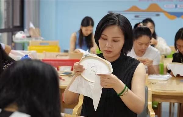 同学们的积极反馈让刘蓉老师感慨不已,她表示:“汉绣绘出的不仅是瑰丽俊秀的传统文化,更要绘出殷实小康的民生福祉,汉绣进社区,让更多人了解和熟悉了汉绣这一国家级非物质文化遗产,也为促进和谐邻里关系,完善社区基层治理提供了有力的文化支撑,更为全职妈妈、失业女性们实现在家门口创收提供了就业渠道,为推进基层治理体系和治理能力现代化注入了文化力量。”