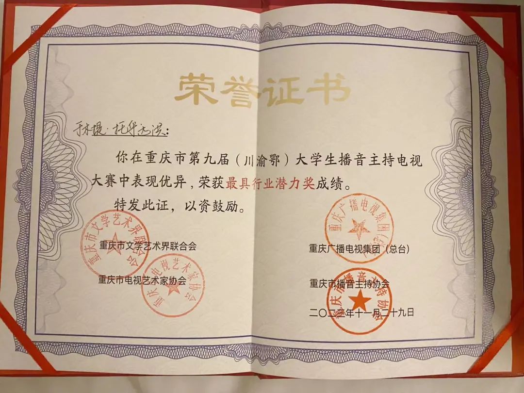 11月29日下午,“开启新征程 逐梦向未来”第九届(川渝鄂)大学生播音主持大赛在市文联剧场圆满举行。最终,米兰体育网页版登录播音主持艺术学院于木提·托乎达洪同学获得三等奖和最具行业潜力奖。