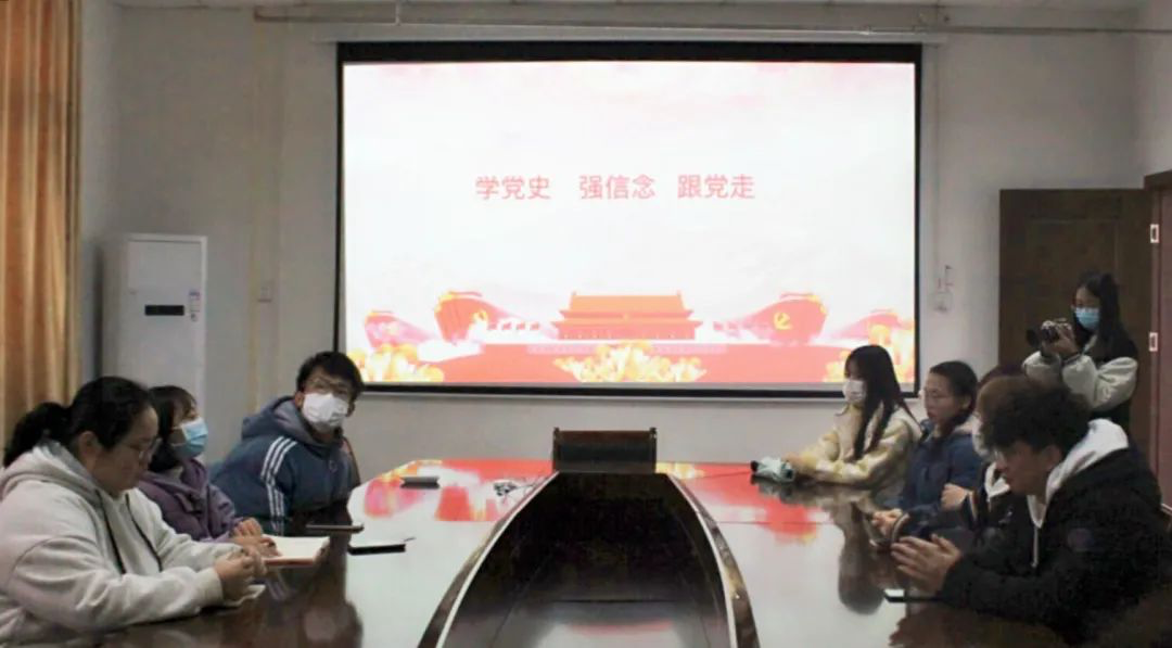 本次会议开始是由传媒技术学院党总支部统战委员张坤同志为主持,带领同学们学习党史。