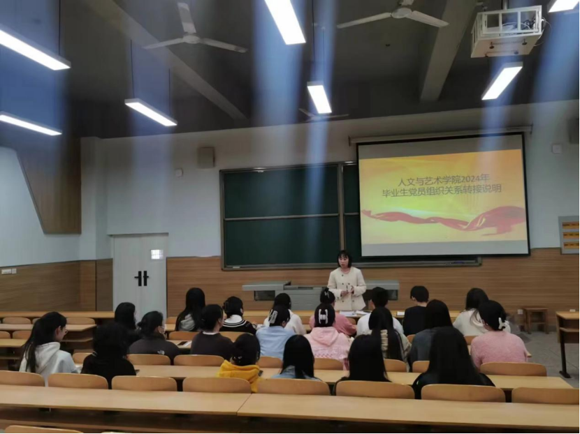 为了提高毕业生党员对组织关系转出的积极性,2024年3月26日下午在7105召开了人文与艺术学院2024年毕业生党员组织关系转接说明会。本次会议由人文与艺术学院学生第一党支部书记刘晓萱、人文与艺术学院组织员荣金玉共同主持,与会人员为人文与艺术学院2020级毕业生党员。