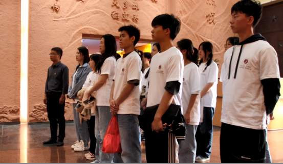 参观结束后,由人文与艺术学院学生第一党支部书记刘晓萱带领第37期预备党员段晓萌、彭馥灿、尹书涵等8人集体诵读《中国共产党章程》总纲第一段,重温党的性质。