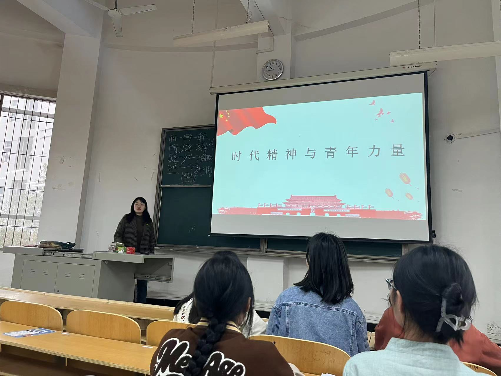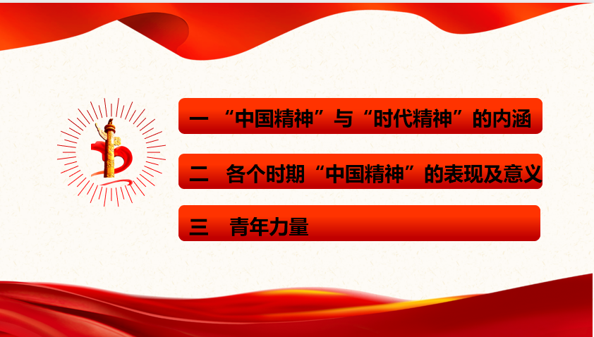 伴随着国际歌的播放,本次党课拉开了序幕。刘敏同志介绍了本次党课的主要内容:一.在“中国精神”与“时代精神”的内涵。二.各个时期“中国精神”的表现及意义。三.青年力量。