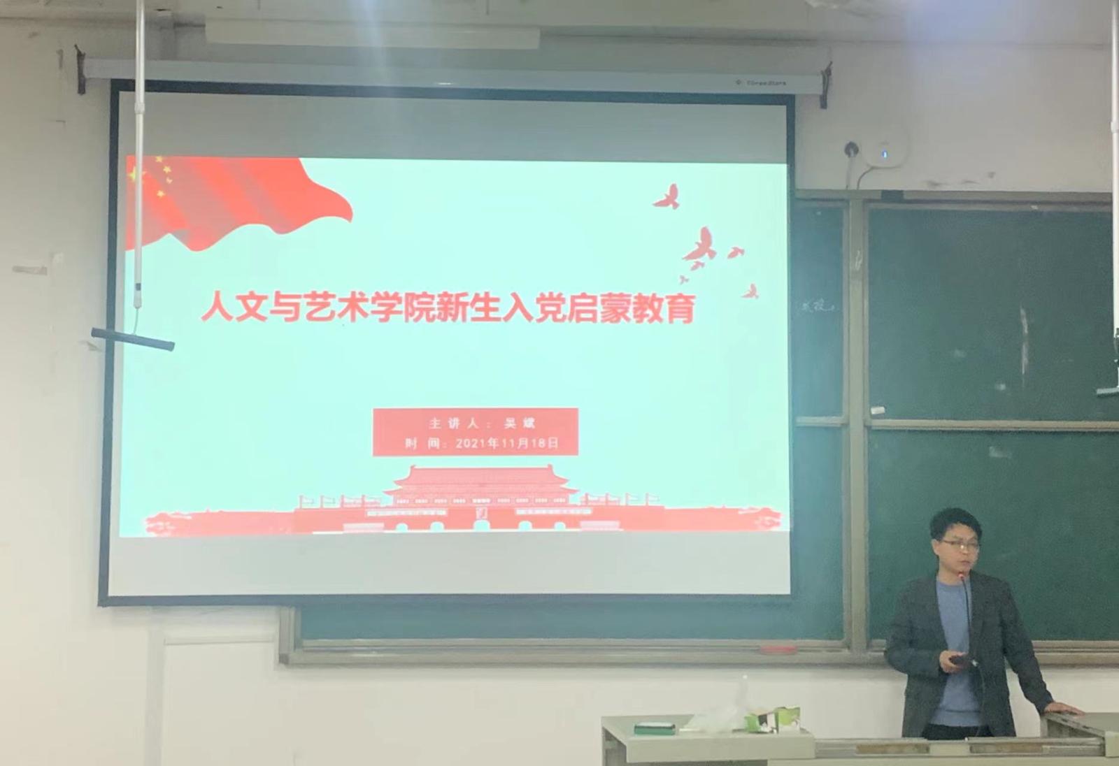 为强化我院21级新生对中国共产党的认识,提高学生的思想觉悟,引导学生树立正确的价值观人生观,积极主动向党组织靠拢。11月17日晚我院吴斌书记开展了对新生的入党启蒙教育。