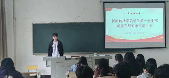 为深入学习贯彻习近平新时代中国特色社会主义思想,全面贯彻落实党的二十大精神。2023年10月8日,新闻传播学院学生第一党支部于3202教室举行确定发展对象支部大会。会议由张蓉同志主持,学生第一党支部全体成员和本期发展对象参会。
