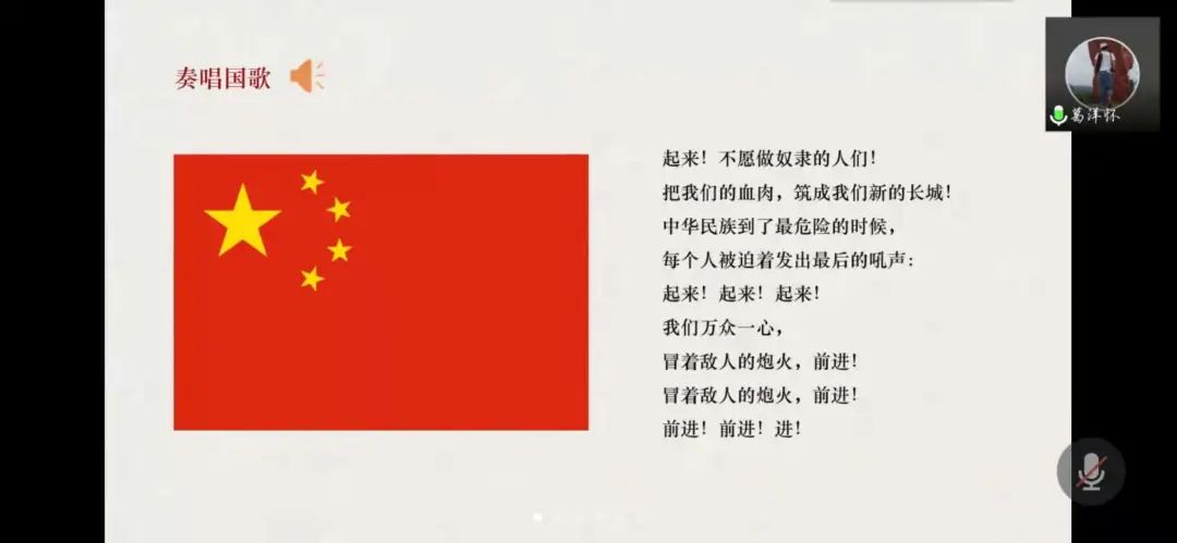 会议开始,全体党员同志起立奏唱国歌,重温入党誓词。