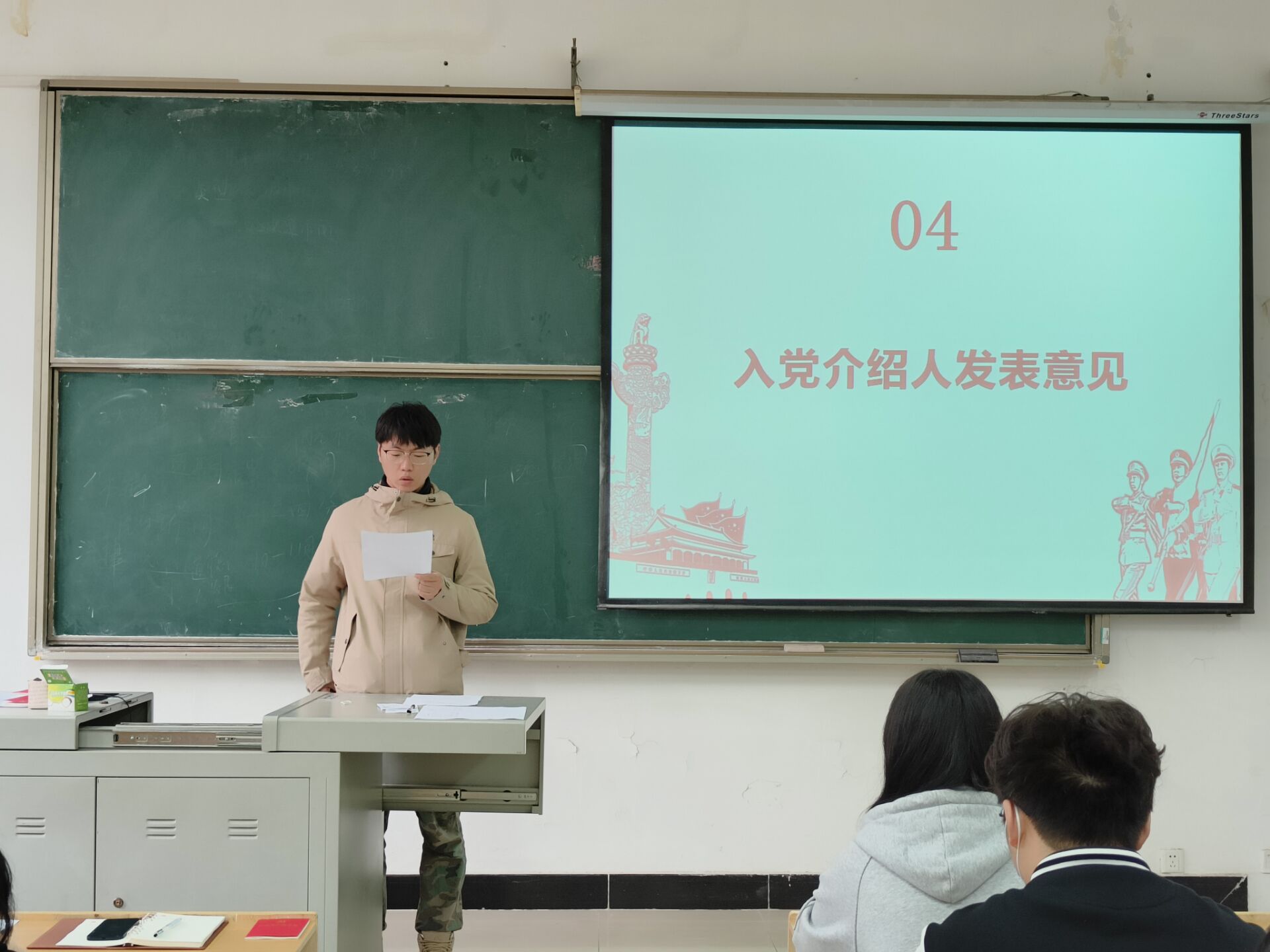 会议伊始,王喆、陈可冉简短的介绍了预备党员转正的程序,预备党员们依次汇报在预备期一年的生活、思想、学习、工作等方面的表现,并正确认识了自己的缺点和不足,并表示将不断地改善和提升自我。随后各位党员同志的入党介绍人介绍预备党员们在预备期间的表现情况和意见,并汇报他们在预备期间的教育考察情况,希望预备党员们能继续严格按照党员要求自己,不论在学习还是生活中都能不忘初心、砥砺前行,行动上与时俱进、勇于担当,为中国特色社会主义建设作出贡献。