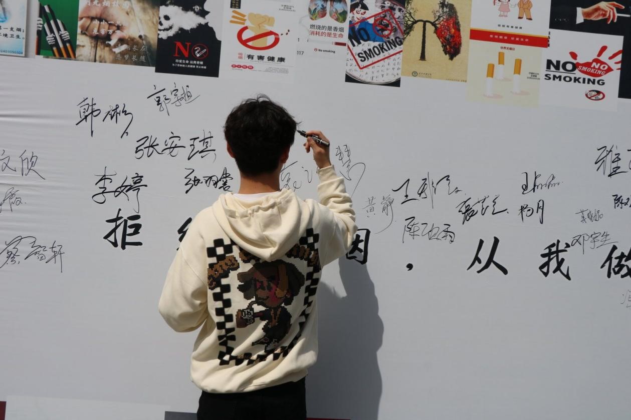 在辅导员的带领以及学生会成员的精心准备下,活动在博雅园进行的如火如荼。为了营造更加良好的游戏氛围和体验感,在博雅园搭起了棚子,拉起了横幅;为了提高同学们的参与感,在活动现场摆出了精美的签名墙,开展了“拒绝香烟,从我做起”的签名征集活动,邀请参与活动的的同学签名,现场热闹非凡。在现场,同学们拿捡来的烟头换取玩飞镖和套圈的游戏机会,从而获取自己想要的礼品,老师和同学们都沉浸在体验游戏以及获得精美礼品的喜悦之中。通过轻松愉悦的氛围,不仅使校园的环境得到了进一步改善,还进一步宣传了“倡导无烟校园”的理念。