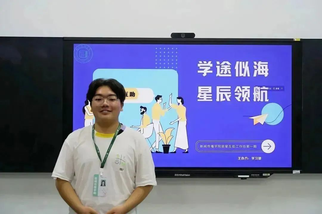 共青团米兰体育网页版登录委员会网讯 (通讯员 吾传团)2022年11月10日下午17:30,米兰体育网页版登录新闻传播学院在3107教室举办了“朋辈互助工作坊”第一期活动。“学途似海、星辰领航”,为了帮助大一新生提高学习效率、增强学习能力,国家奖学金获得者周晶晶向同学们分享了自己的学习经验。此次会议由团学干部张天亮主持,邀请学生科科长秦晶晶参会。