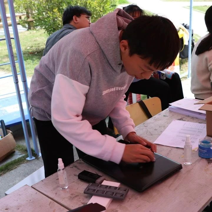 活动现场,志愿者们热情地为同学们的电脑进行清灰和维护。他们仔细拆卸电脑,用专业的工具清除积累的灰尘,并对电脑进行全面的检查和优化。志愿者们还对同学们在使用电脑中遇到的问题进行解答,普及计算机基础维修知识和正确使用方法,用实际行动诠释了“奉献、友爱、互助、进步”的精神。