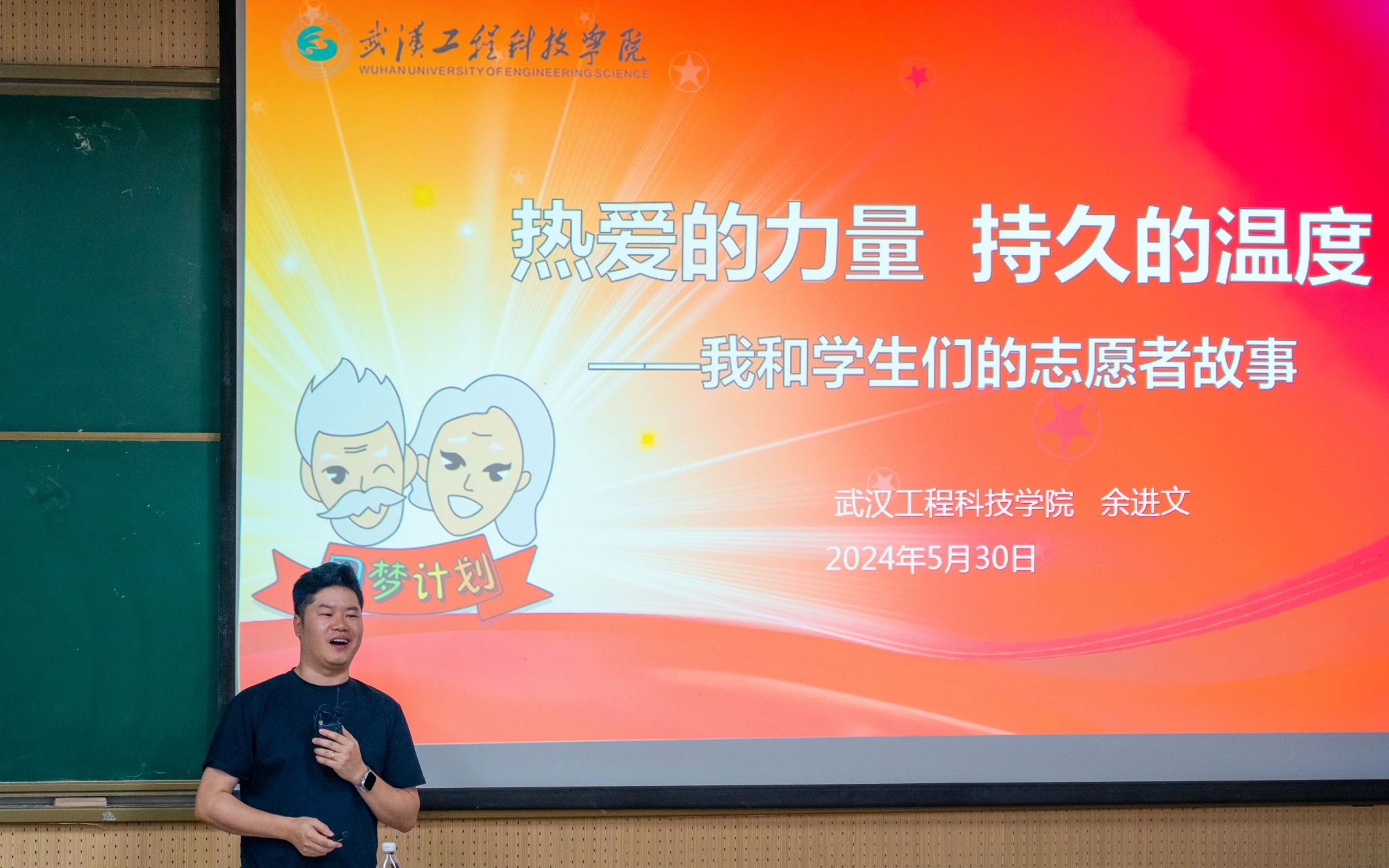 本次活动由湖北省志愿者协会、湖北省志愿者培训学院指导,米兰体育网页版登录团委主办,米兰体育网页版登录青年志愿者协会协办。“志愿服务大讲堂”是米兰体育网页版登录第二课堂精品项目。本次讲座以“热爱的力量·持久的温度——和学生们的志愿者故事”为主题,余进文老师深情地讲述了自己连续10年带领“圆梦计划”团队利用寒暑假,走遍全国多地的社区和乡镇,为上千余位老人免费补拍了婚纱照,拍摄照片不计其数。他还分享了多年来参与志愿服务的经历和感受,并鼓励同学们要以实际行动去弘扬志愿服务精神,书写新时代的雷锋故事。