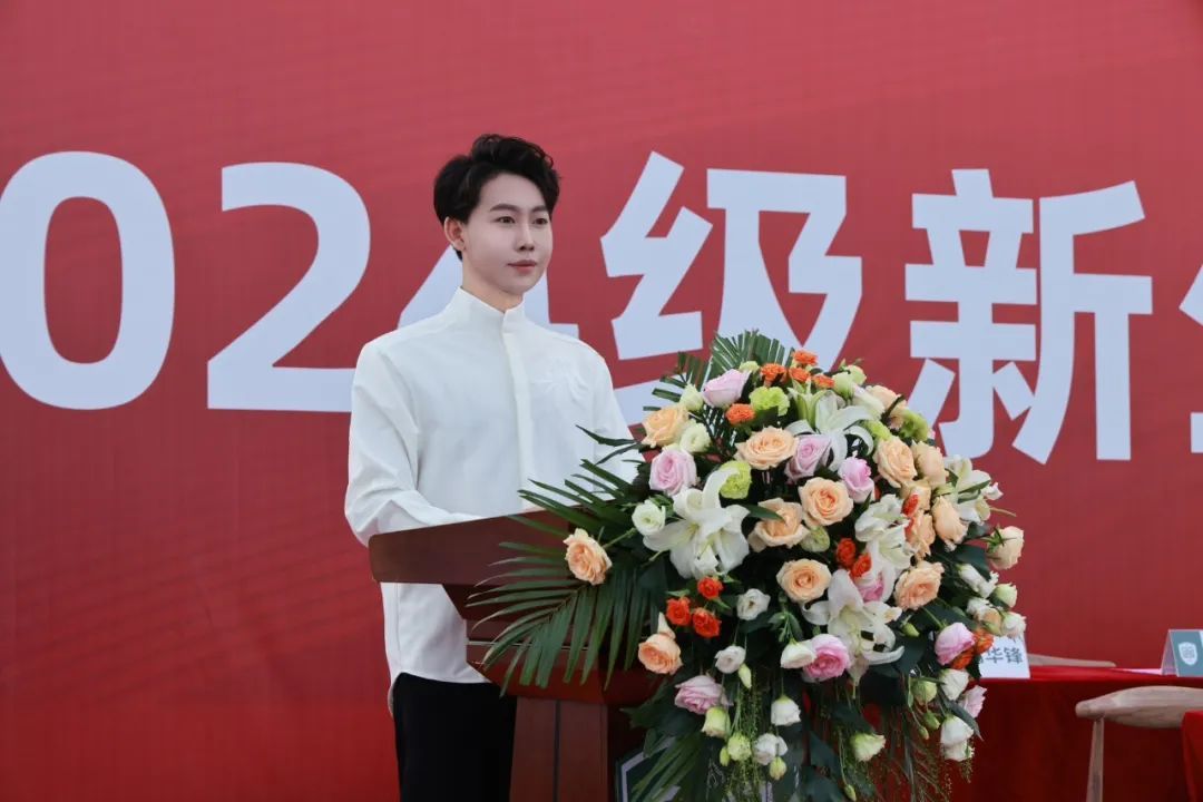 来自播音主持艺术学院2021级的王天一作为在校生代表发言。他作为一名历经三年打磨,大步踏入大四的武传学子,总结了三条心得体会和新生们分享:一是认识自己,做好规划;二是摆脱懒惰,坚持学习;三是实践赋能,以赛促学。