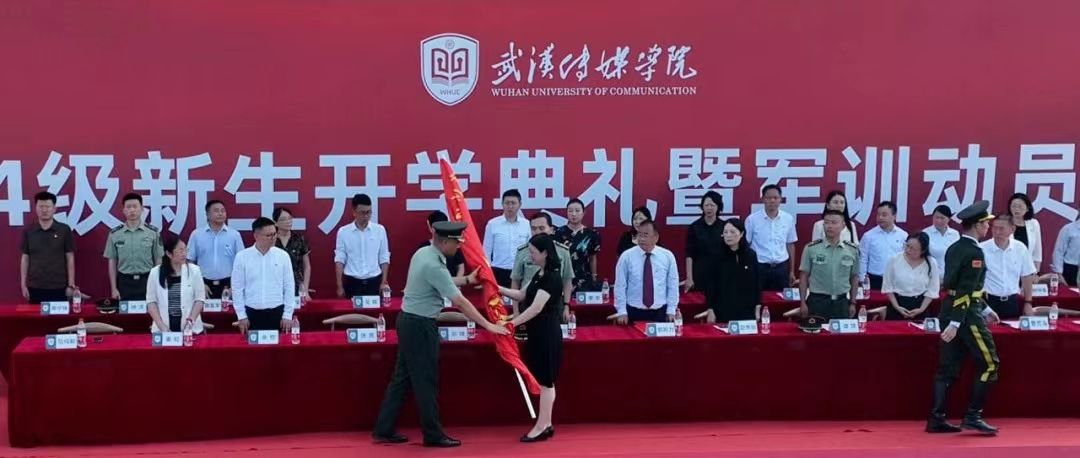 伴随着慷慨激昂的《义勇军进行曲》,耀眼的五星红旗在万众瞩目中冉冉升起。在新生代表林铃泠的带领下,全体新生佩戴上那一抹象征着希望、传承与生机的“武传绿”校徽并庄严宣誓:“以青春之名许下誓言,向阳向上,奋斗以成。生逢盛世,重任担当。我将秉承校训,博雅、崇实、弘志、拓新,勤奋好学,练就本领,勇敢担负时代使命,谱写属于新时代传媒人的绚丽华章……”一句句誓言,是对未来的期望,是对梦想的忠诚,对初心的炽热。