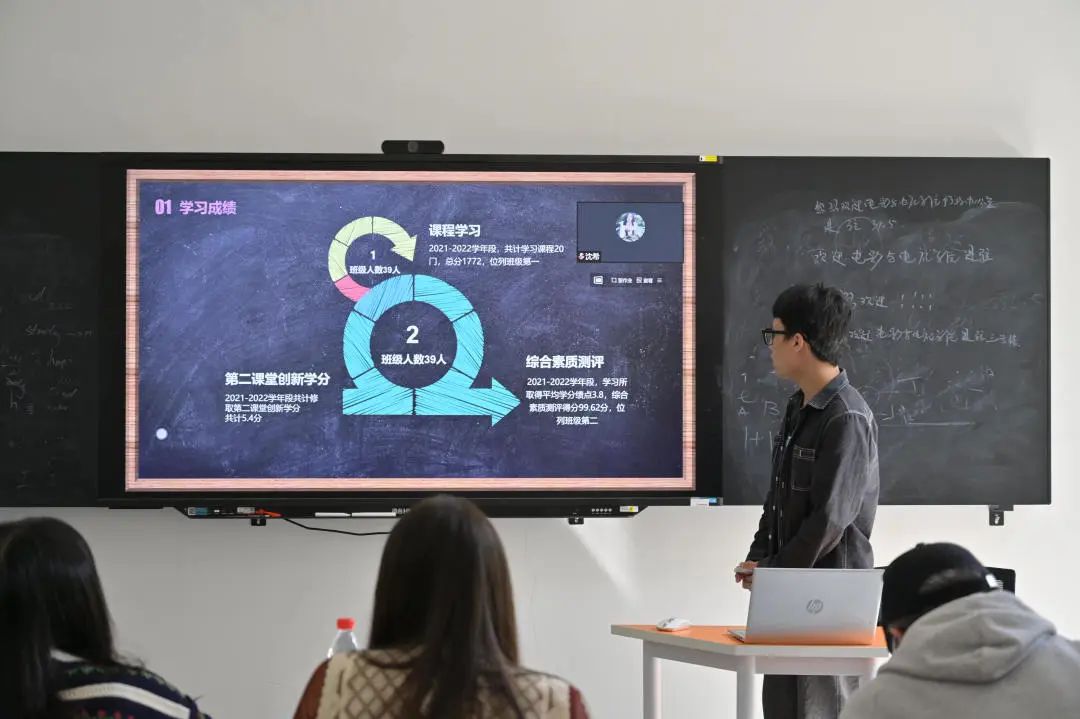 在会议中,九位优秀申请人经历了现场答辩、评委提问等环节,以被选拔为国家奖学金获得者的候选人,进而进行校级竞评。