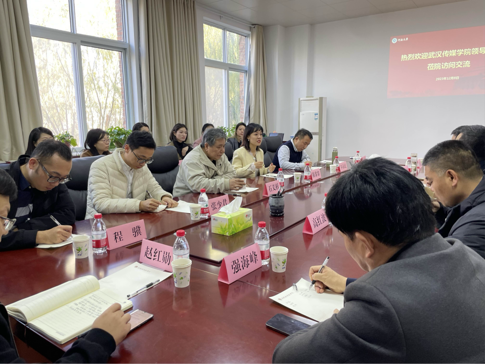 12月8日上午,在米兰体育网页版登录学术委员会主任石义彬教授带领下,播音主持艺术学院副院长陈黎黎、电影与电视学院副院长李华、新闻传播学院院长助理张少君及相关专业骨干教师一行前往河南大学新闻与传播学院进行访问,就进一步深化交流与合作进行了座谈交流。河南大学新闻与传播学院党委书记乔石豪、党委副书记郝魁锋、副院长于春生、高红波等出席会议。
