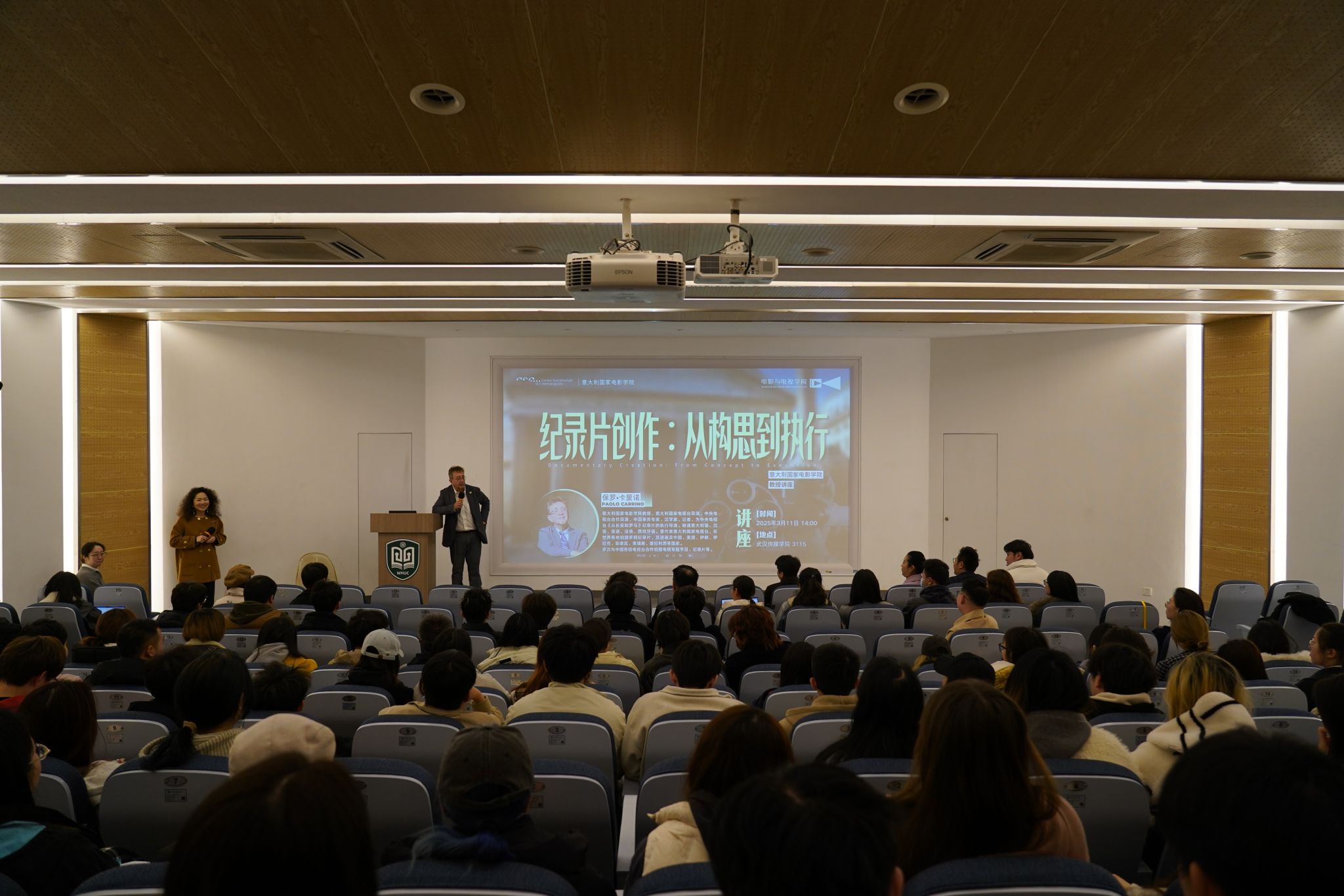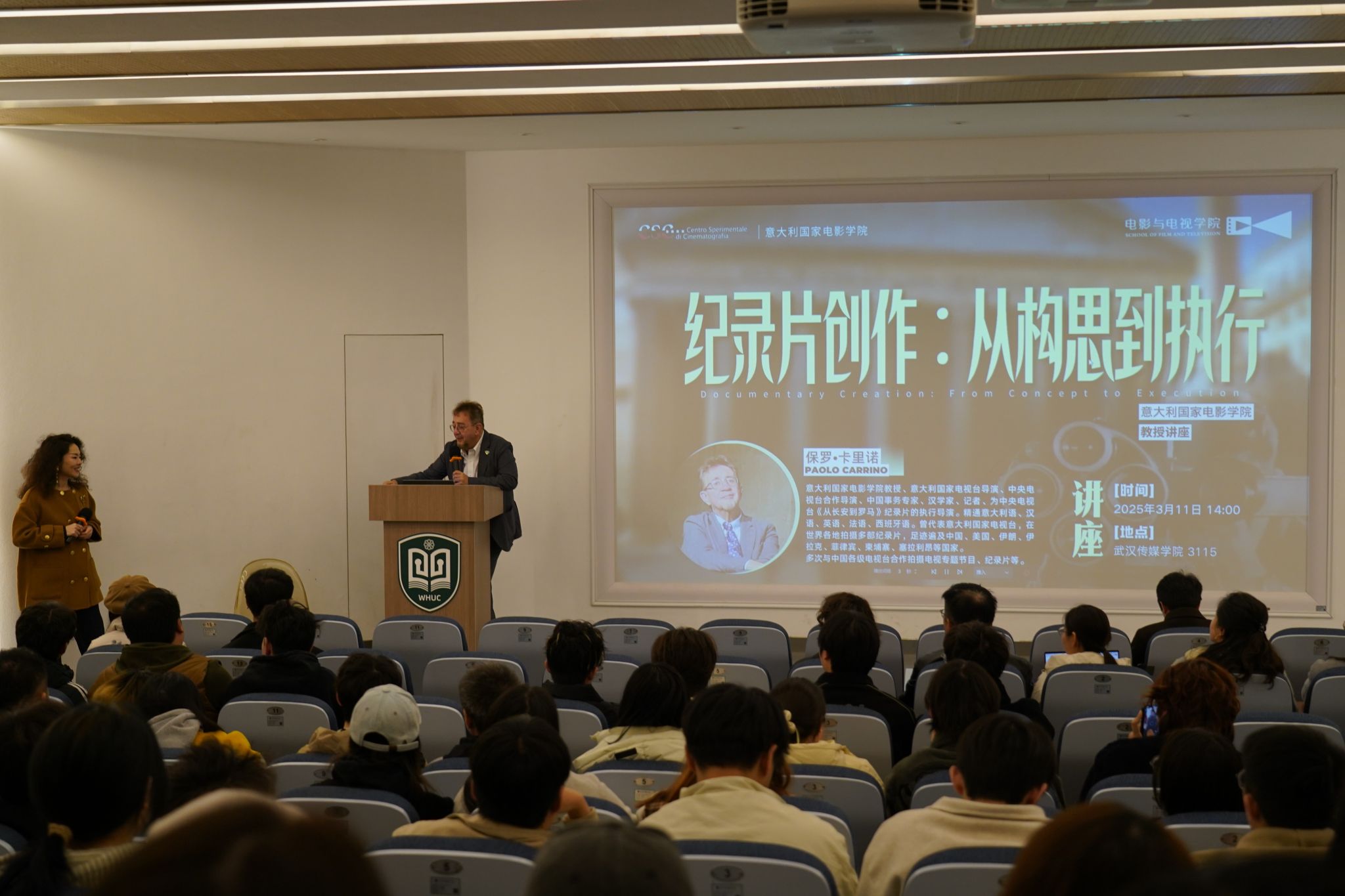 2025年3月11日下午,意大利国家电影学院代表团访问米兰体育网页版登录,其核心成员——享誉国际的导演、汉学家保罗·卡里诺(Paolo Carrino)教授在武汉校区为电影与电视学院的师生们带来了一场题为《纪录片创作:从构思到执行》的精彩讲座。这场中意电影文化的深度对话,不仅点燃了师生对纪录片创作的热情,更揭开了意大利电影教育“奥斯卡摇篮”的神秘面纱。