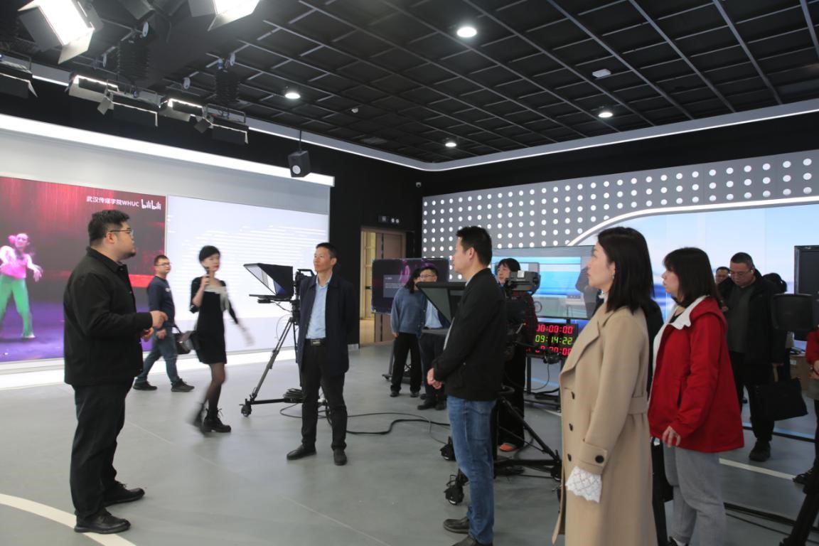 座谈会前,赵振宇一行参观了学校电影与电视学院以及“拍吧”短视频中心、以及新近落成的融媒体中心,我校相关人员向其介绍了学校融媒体中心的建设情况以及相应的实践教学成果。