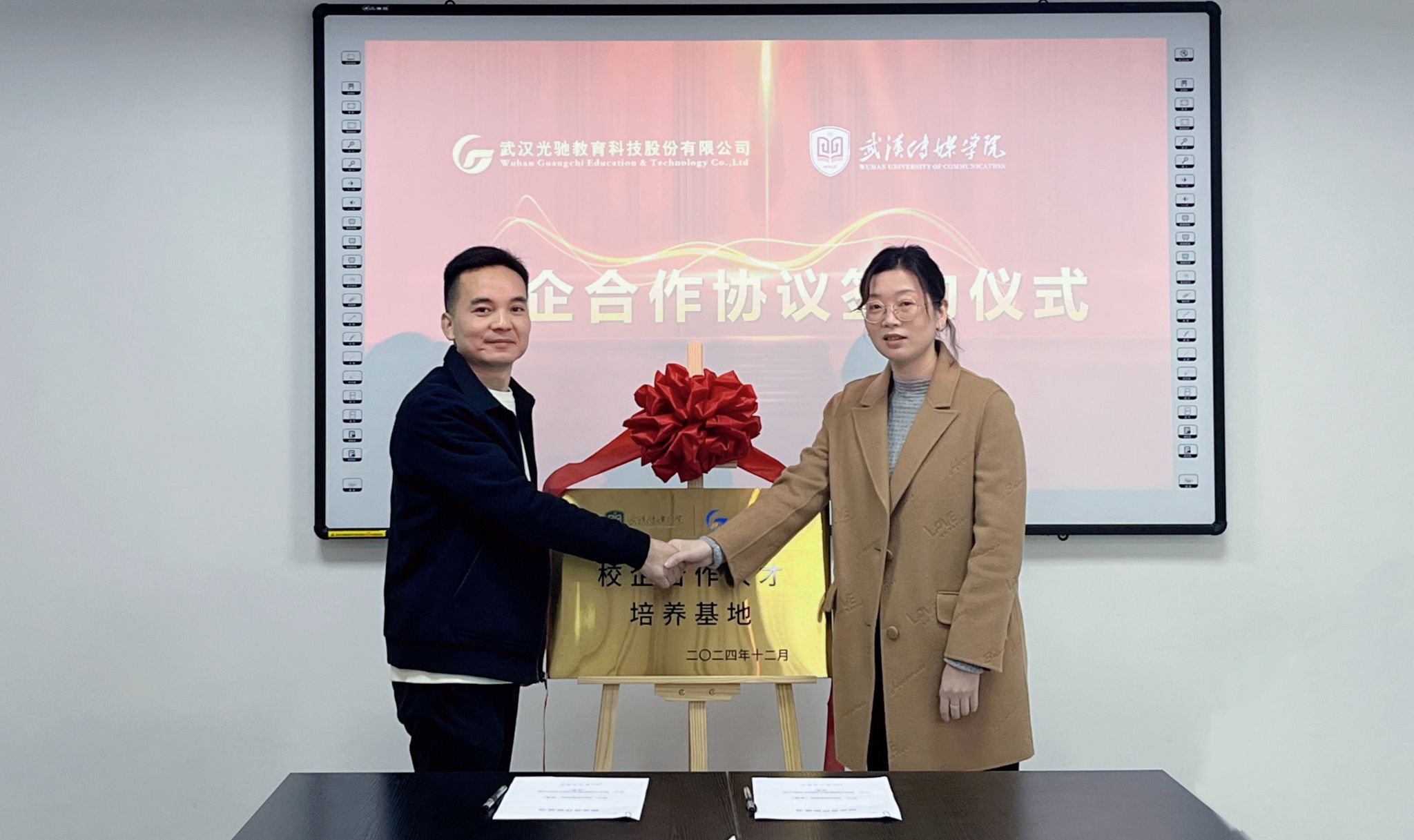 (通讯员:杨洁)2024年12月16日,我校传媒技术学院与武汉光驰教育科技股份有限公司共建实习实践基地,签约暨授牌仪式在武汉光驰教育科技股份有限公司会议室举行。武汉光驰教育科技股份有限公司董事长李小红、大区经理廖珊,传媒技术学院副院长胡明星、教师代表杨洁、李文、徐冰参加了此次签约仪式。会议由武汉光驰教育科技股份有限公司黄丹丹主持。