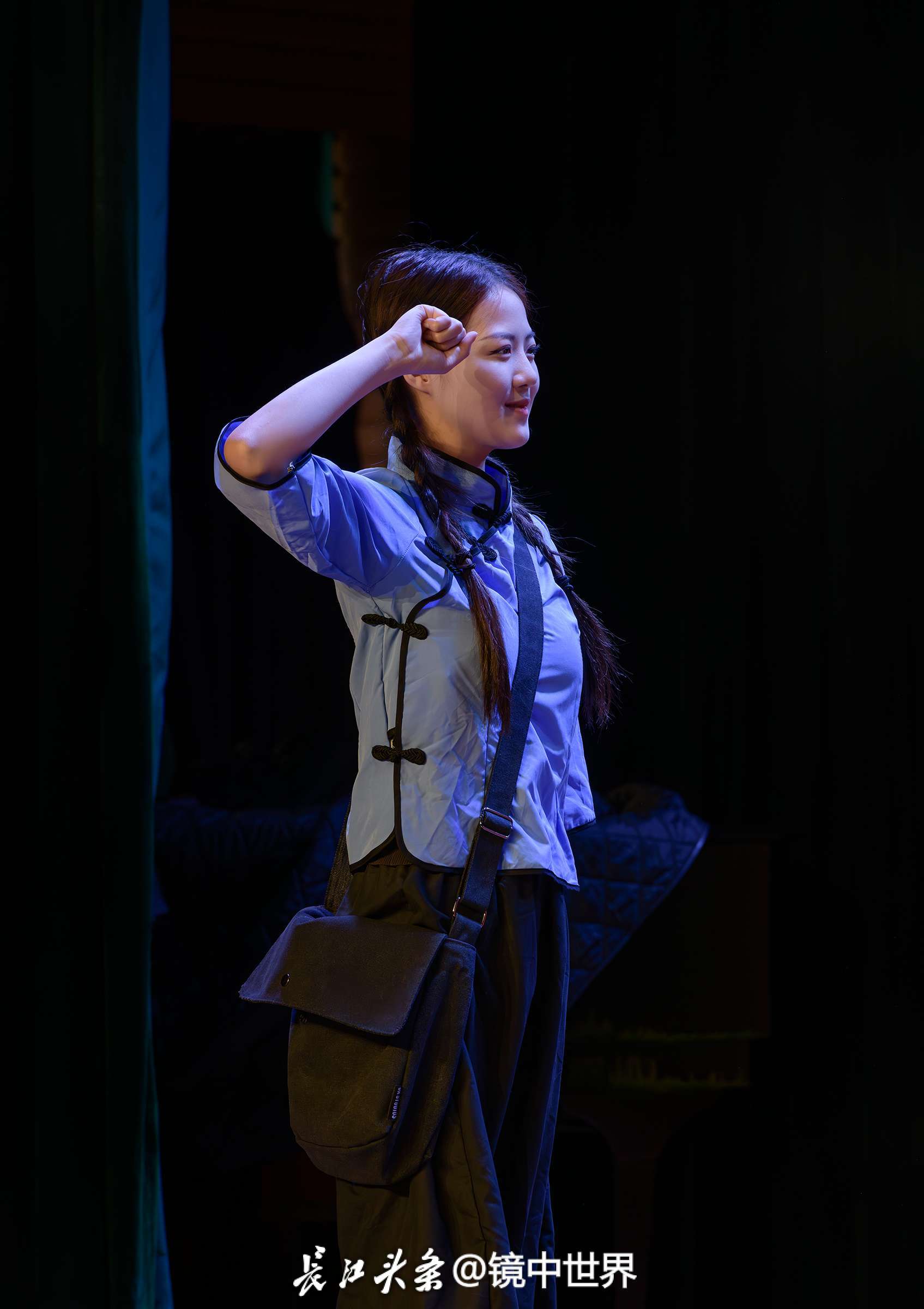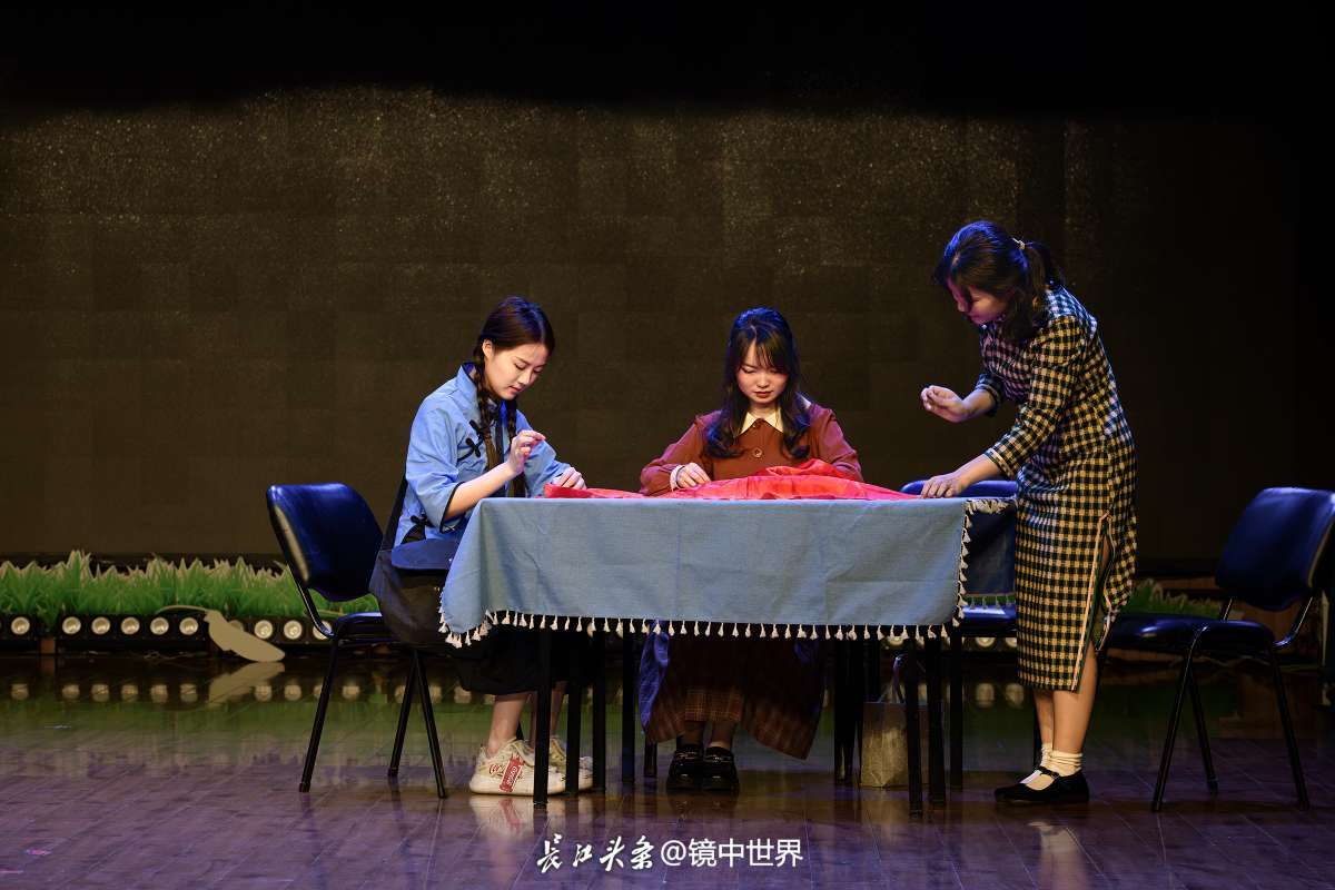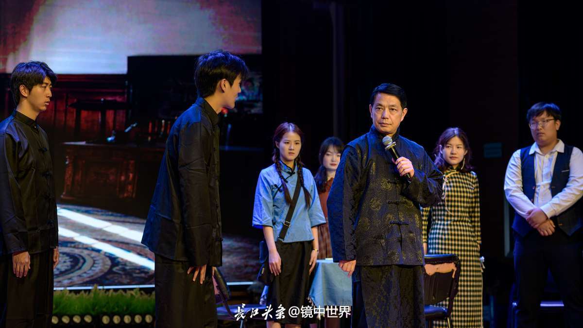 为了纪念武汉和平解放75周年,5月9日下午,江汉区文化馆三楼小剧场正在排练情景话剧《党旗升起》。